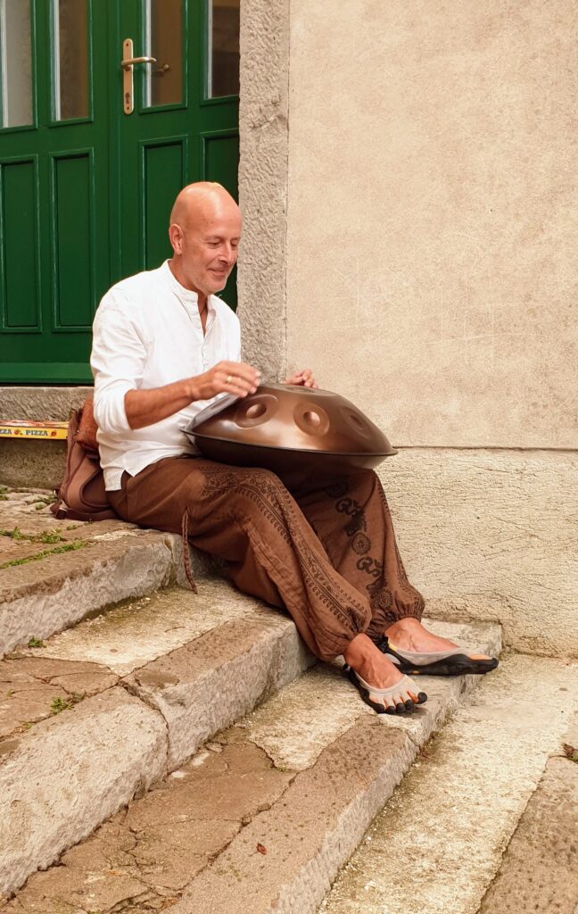 wir beginnen mit einem Handpan-Konzert von Thomas, der mit sanften, schwingenden Tönen eine Atmosphäre der Ruhe und Inspiration erschafft. Lass dich von den Klängen tragen und in eine Welt voller Harmonie entführen.
